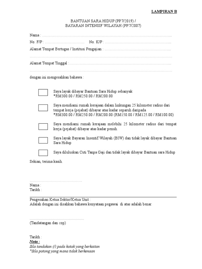 borang bantuan sara diri